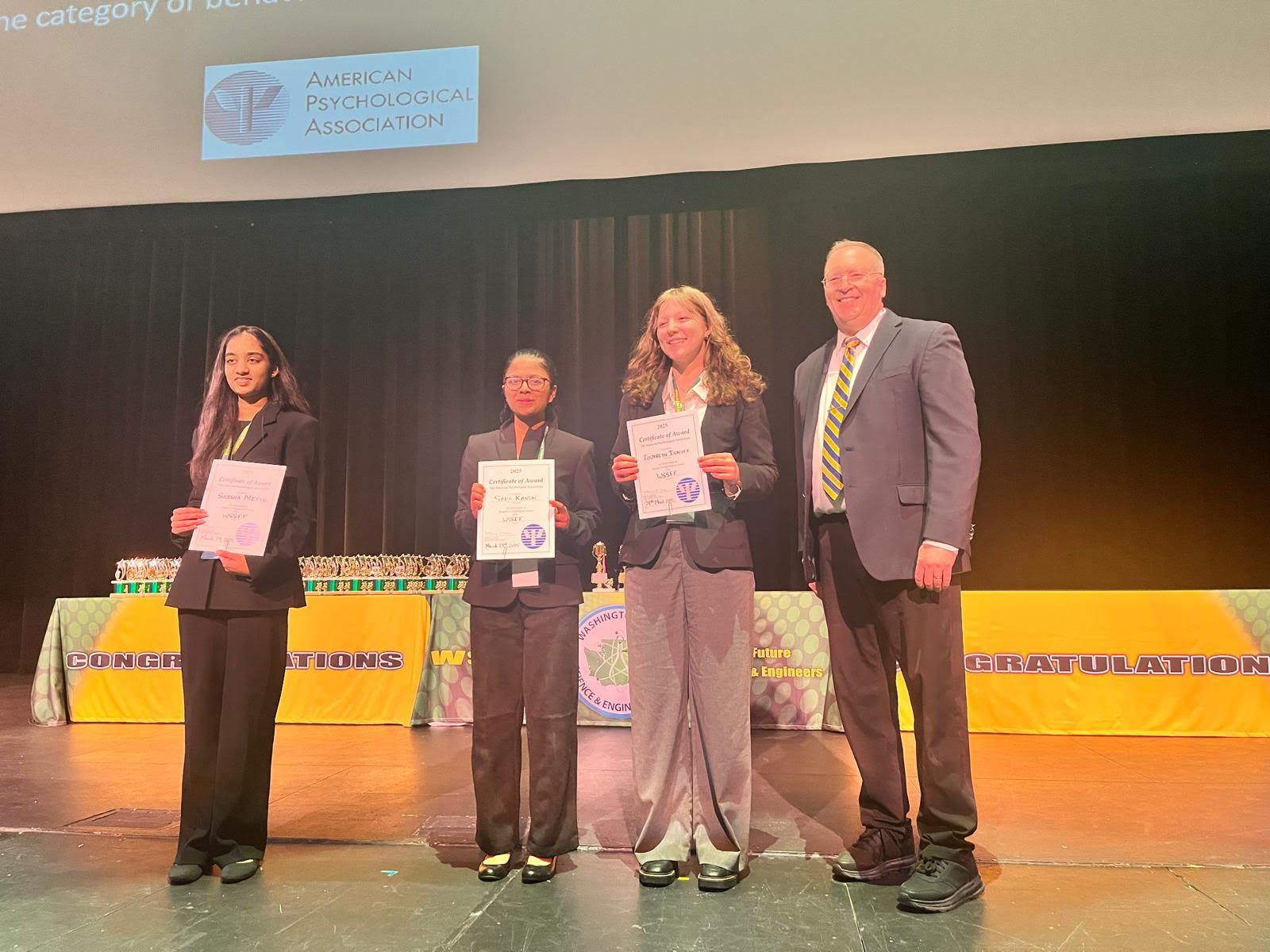 - Presented at WSSEF (won 1st Place + Psychological Sciences STEM Excellence Award).